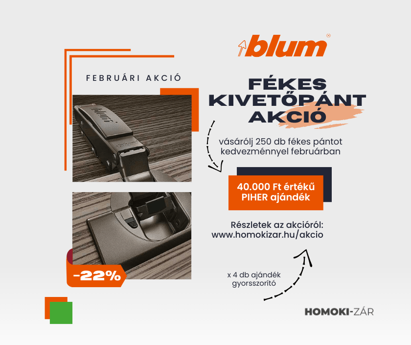 További részletekért és a részt vevő cikkszámok listájáért keress minket bizalommal, érdeklődj közvetlenül kollégáinknál vagy az alábbi linken akciós termékeink megtekinthetőek: Blum Februári akció!
