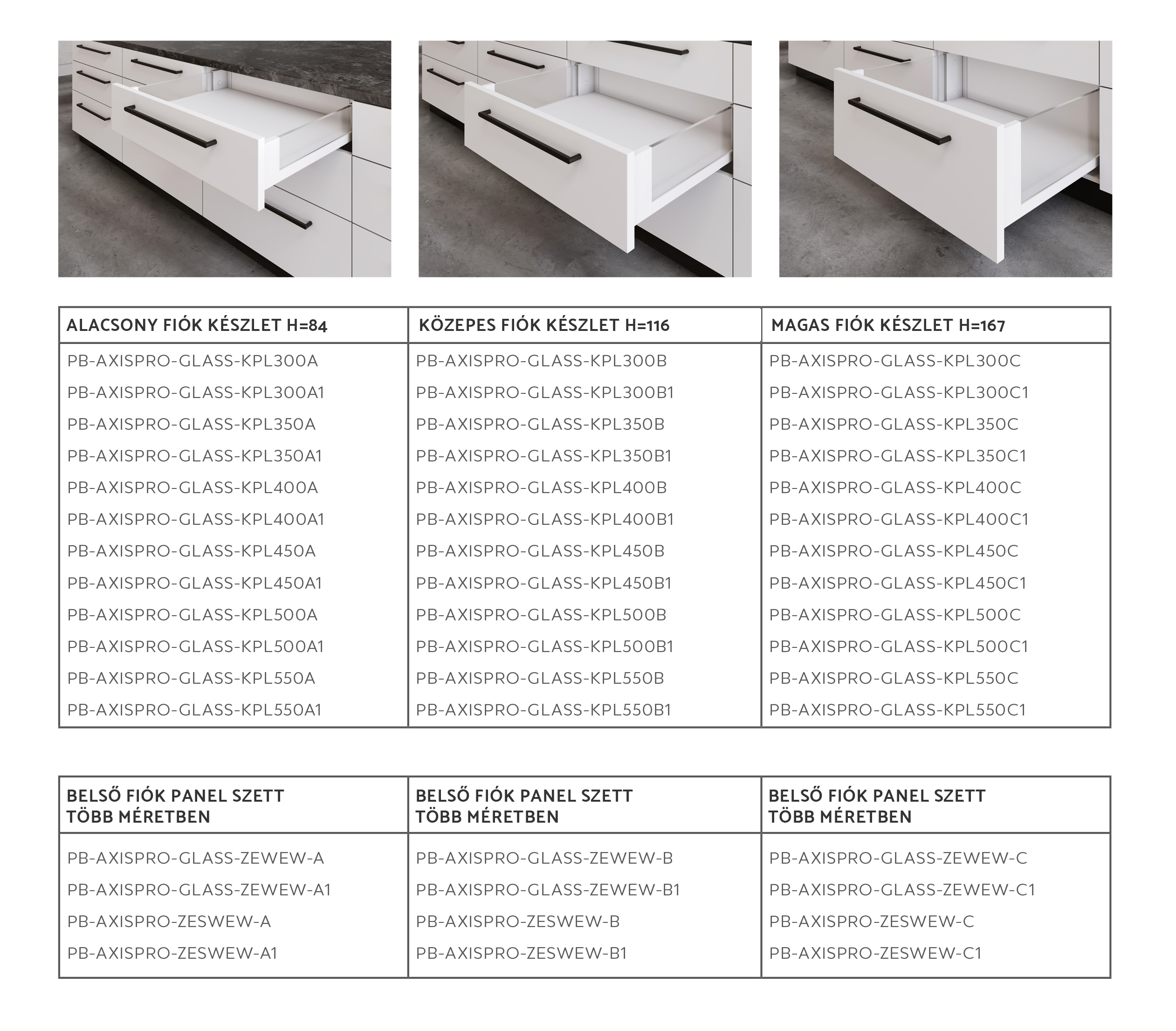 Az Axis Pro termékcsalád rengeteg opcióval és megoldással rendelkezik. Különböző mélységű és magasságú fiókokhoz is mind-mind megoldást kínál.